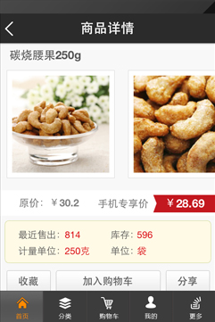用戶可以通過手機(jī)在任何地方、任何時間瀏覽尚諾西餅提供的產(chǎn)品,了 解新品、熱賣產(chǎn)品的價(jià)格,并可以將商品快速分享到微博及微信。